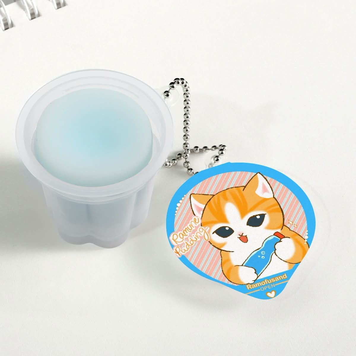 - Small pudding cup keychains with a matching, squishy pudding toy inside (NOT EDIBLE!!)